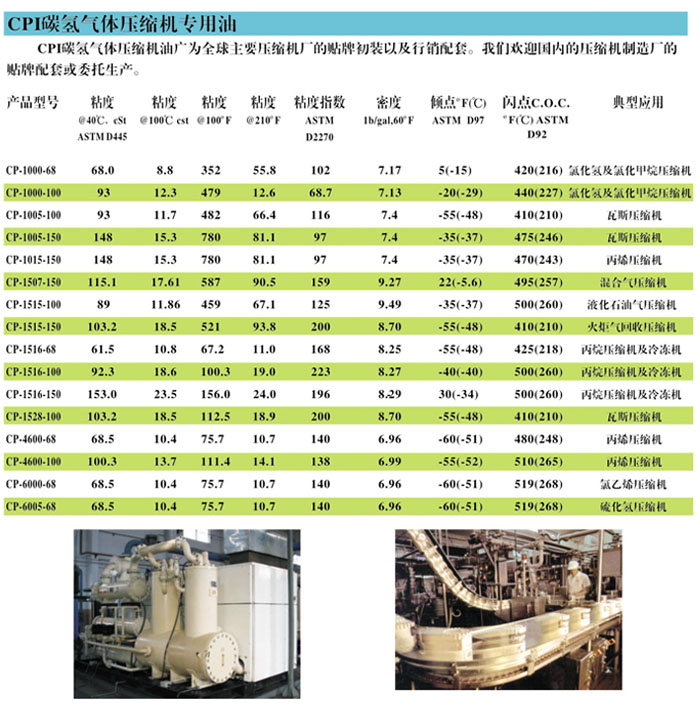 CP-4600-68/CPI-4600-68常被建議為冷凍機(jī)上的服務(wù),乃是因其在低溫下優(yōu)越的產(chǎn)品特性。此產(chǎn)品不含臘,且在冷凍生產(chǎn)線上具有低的傾點(diǎn)及凝絮點(diǎn)。即使在制冷劑的稀釋下,CP-4600-68/CPI-4600-68具有高的油膜強(qiáng)度,可以提供良好的潤(rùn)滑。