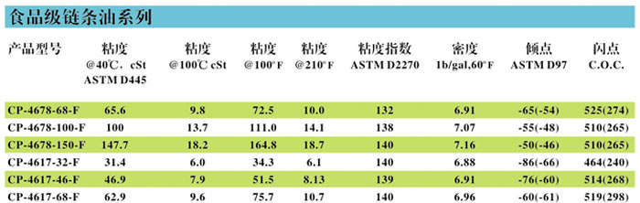 CPI-1078-220-F/CP-1078-220-F食品級鏈條油產品是特殊配方設計的,加氫裂解的脫蠟基礎油,其主要的優點包括: